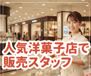 | 職種 | <派遣>洋菓子販売スタッフ |